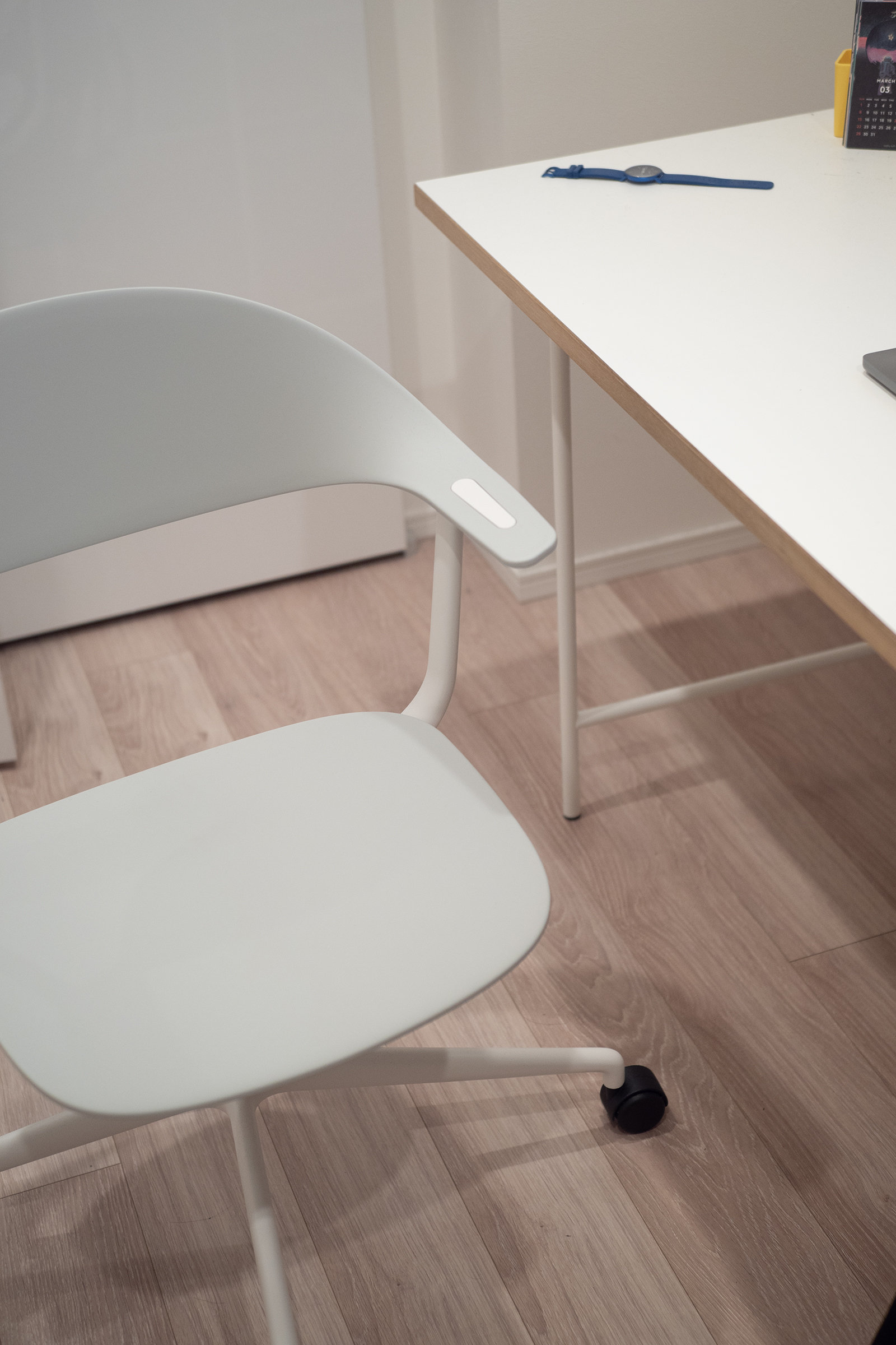 ワークチェアを新調しました。Physixも、とても良かったのですが、ホワイト系のメッシュ生地でだんだん汚れてきてしまい。購入したのは同じVitraのMyntです。色もホワイト系。